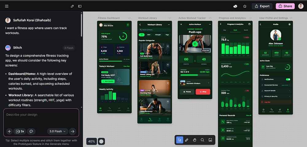 Instead of struggling inside design tools for hours, you can now use Stitch to generate professional UI drafts in minutes, then refine them inside Figma before building them in Flutter.